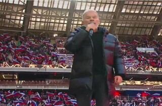 Пропагандистський мітинг-концерт, організований владою Росії до 23 лютого та річниці вторгнення в Україну, пройшов на стадіоні «Лужники» у Москві. Традиційно виступили відомі пропагандисти: Машков, Лепс, гурт «Любе», Дюжев та інші блазні. Курйозний випадок стався з Газмановим.
