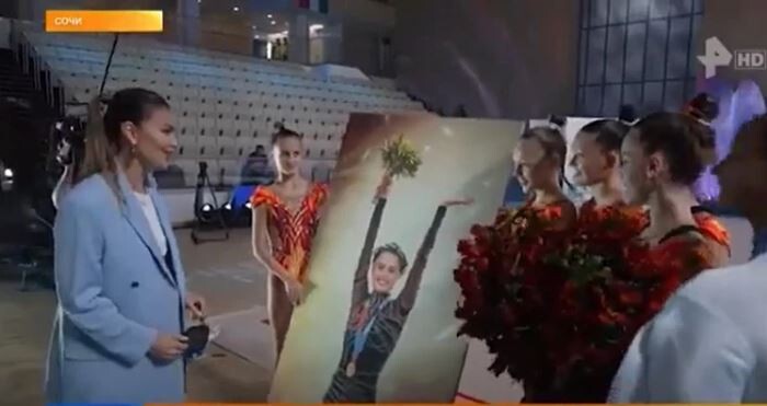 На церемонії коханка Путіна з’явилася в чорному брючному костюмі, на лацкані якого красувався рашистський символ «z». Пізніше ура-патріотка змінила вбрання на небесно-блакитну «двійку». Згодом Кабаєва зустрілася зі своїм багаторічним тренером з художньої гімнастики Іриною Вінер та учасницями турніру. Як повідомляє «сентиментальна» російська преса, дівчата подарували Кабаєвий малюнок на ватмані, зроблений своїми руками, який зворушив ту до сліз.