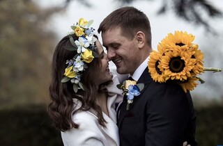 Українська біженка вийшла заміж в оточенні портретів своїх близьких