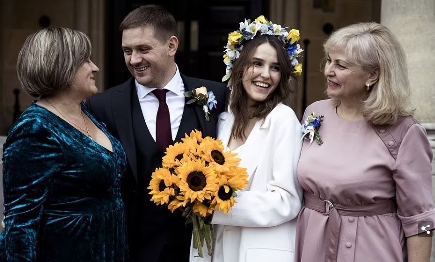 Львів'янка Марія Білик, яка з початком російської агресії виїхала до Великої Британії, організувала для себе незвичайну церемонію одруження. 23-річна Марія вийшла заміж за 27-річного Віталія, з яким із 2019 року підтримувала стосунки на відстані, в оточенні портретів рідних і друзів, які розставили на стільцях. Про це пише Daily Mail.