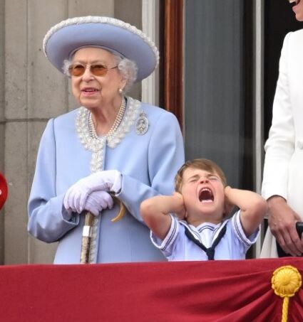 В какой-то момент, когда в небе пролетали самолеты, громкий шум показался невыносимым для ребенка, он закрыл уши руками и закричал. Королева Великобритании попыталась отвлечь принца Луи, когда она с ним говорила, ребенок немного успокоился. Когда шоу закончилось, королева повернулась к правнуку и сказала: «Пошли, теперь все». Издание отмечает, что принц Луи был одет в особенный наряд. На нем был костюм матроса, в котором его отец появился на параде Trooping the Colour в 1985 году.