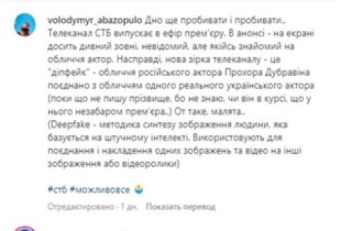 Нагадаємо, першим на ситуацію звернув увагу український актор Петро Крилов. «Здавалося, все добре: на нас чекає український драматичний серіал з класними акторами, – розповідає Крилов на своїй сторінці в ФБ. – Але є одна проблема: одного з героїв не існує, це діпфейк (методика синтезу зображення людини, яка базується на штучному інтелекті). Насправді це російський актор Прохор Дубравін, який дуже багато років знімався в Україні, однак після вторгнення жодним словом не обмовився про війну. І тепер на своїй сторінці в соцмережі він вітає росіян з днем перемоги. Невже Прохор зробив пластичну операцію, щоб з'явитися в українському серіалі? Ні! Це зробив телеканал СТБ. Обличчя, яким замінили Дубравіна, взяли у актора Дмитра Саранскова».