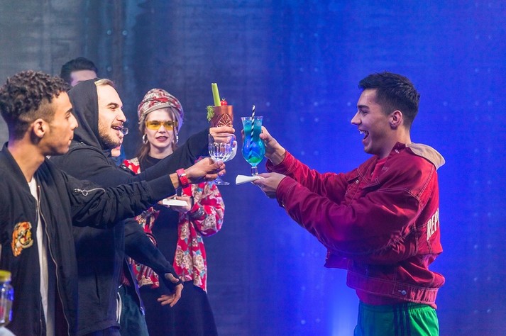 Открыла фотосессию Юля Дыхан. Пока она позировала в холодной воде, участники на бекстейдже ужасно волновались. Ведь бокал с водой и бурлеск – не все их задачи на сегодня. Каждый на время фотосета должен превратиться в напиток. И если Юле досталось игристое вино, то Яне Кутишевской – кисель.