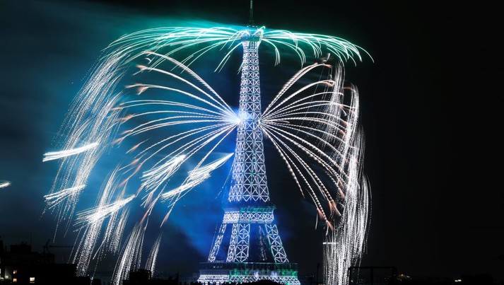 А уже вечером Эйфелева башня засияла фонариками в цвет флага государства. Специалисты установили 10 тысяч механизмов для запуска фейерверков и 160 дополнительных прожекторов, чтобы подсветить Эйфелеву башню. По сообщениям мэрии города, в этом году минута пиротехнического шоу обошлась в 25 тысяч евро.