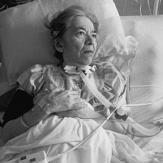«Женщина, которая не любила фотографироваться и которая всегда была ухоженной и опрятной, разрешила мне снять ее в грубых, местами неприятных обстоятельствах, несмотря на медицинские процедуры и боль, среди которых нет места лести и тщеславию», — вспоминает фотограф.
