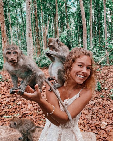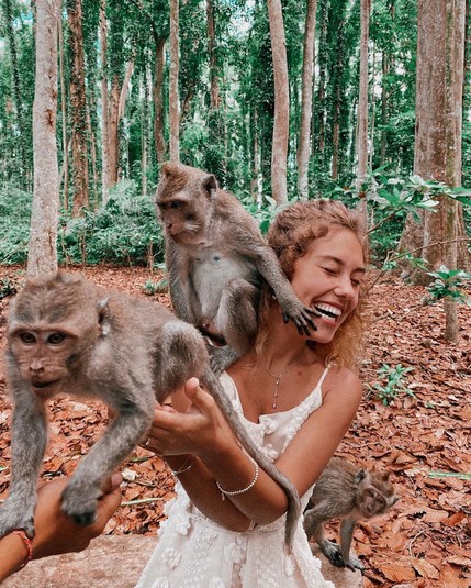 Позже она поделилась снимками с веселой встречи с обезьянами. Даша в милом белом сарафане позирует вместе с двумя зверушками - одна сидит у нее на плече, а вторую девушка держит на руках и при этом заливисто смеется.