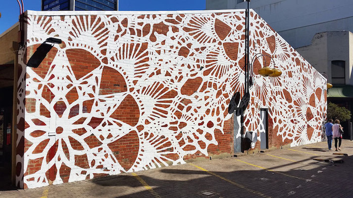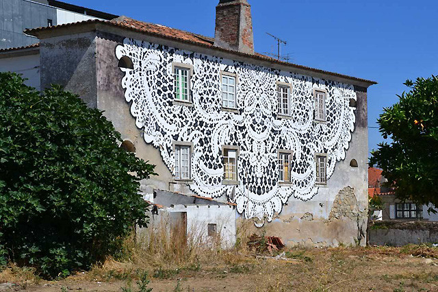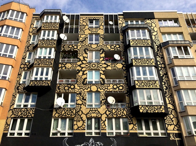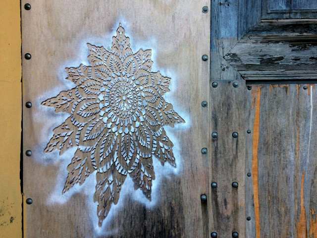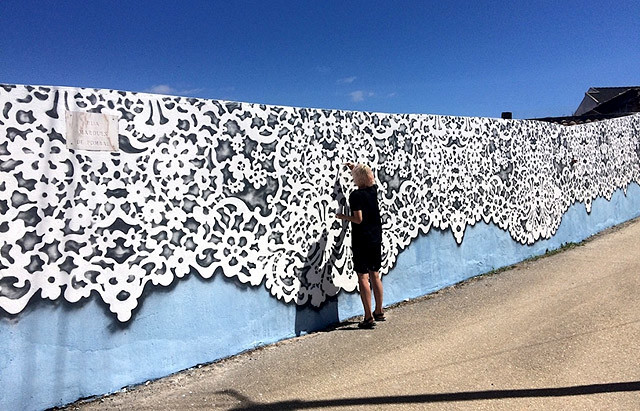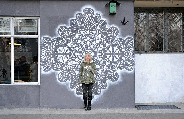 Кружевной стрит-арт: Польская художница разрисовывает города с помощью трафарета и акриловой краски