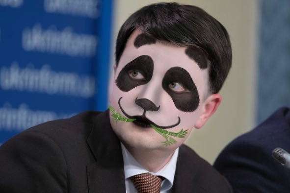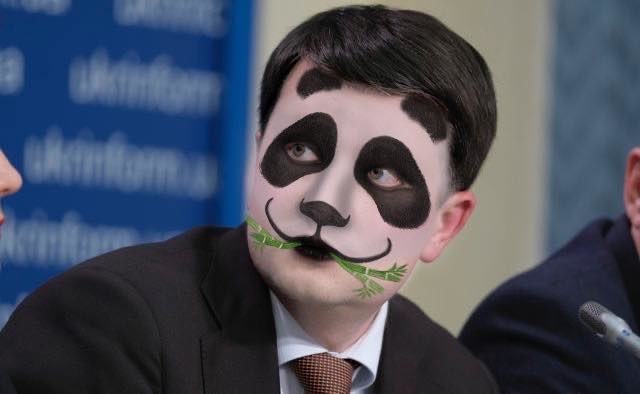 Самым милым хэллоуинским образом оказался макияж панды на Дмитрии Разумкове.