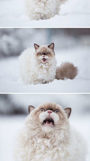 Фото ниже как нельзя лучше демонстрируют этот талант. Независимо от того, что кошки испытывают: видят снег в первый раз, понимают, что потолочный вентилятор вращается, пробуют лед или узнают, что их любимый диван был продан, они остаются отличными актрисами.