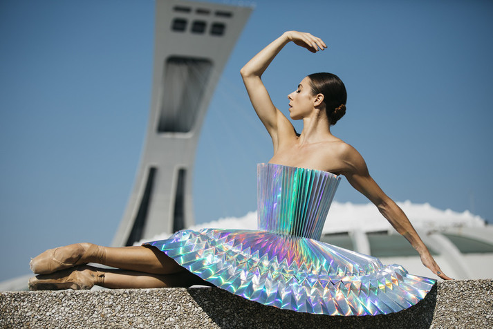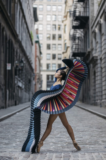 Локтин создавала форму и цветовую палитру наряда индивидуально для каждого артиста, которому предстояло в нём позировать. А Дез работала над размещением своих моделей в узнаваемых городских местах. Бумажные творения варьируются от платьев, напоминающих традиционные балетные пачки, до затейливо сложенных экспериментальных форм.