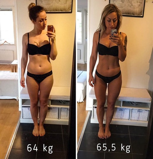 И чтобы доказать, что стройность — это не отметки на весах, а объемы тела, люди делятся фотографиями до и после похудения, но с одной маленькой особенностью — их вес остался тем же.