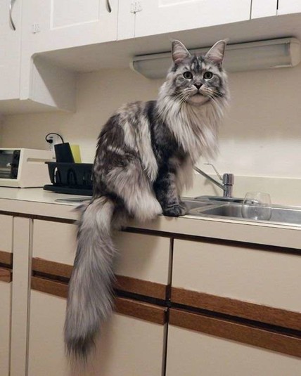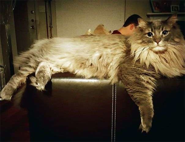 Самым «длинным котом» попавшим в Книгу рекордов Гиннеса в 2010 году стал 5-летний мейн-кун по кличке Стьюи, длина которого от кончика носа до кончика хвоста составила 123 сантиметра. Кроме того, эти пушистые гиганты могут весить до 16 килограммов! История появления этой породы окутана тайной, хотя и ходит распространенный, но генетически невозможный миф о том, что мейн-куны являются результатом скрещивания между кошками и енотами.