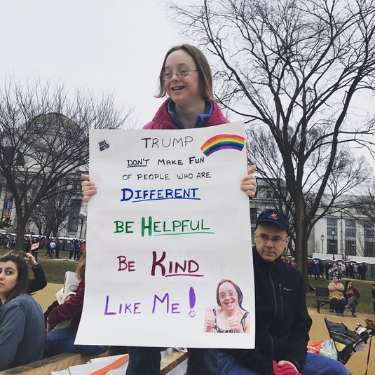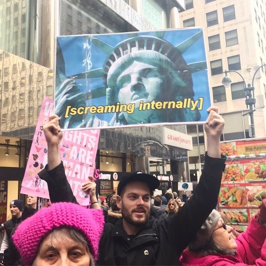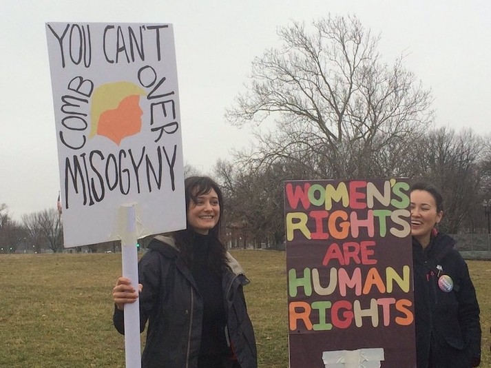 Поскольку Дональд Трамп неоднократно был уличён в сексистских высказываниях и сексуальных домогательствах, женщины вышли на марш под феминистическими лозунгами.