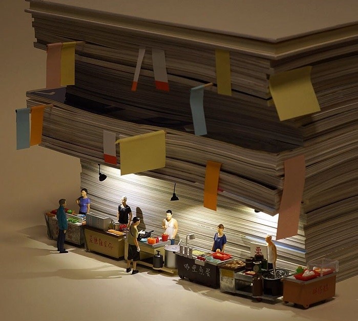 Он не утратил детское воображение. Каждый день, начиная с 2011 года, он создаёт миниатюрные диорамы из еды и обычных предметов.