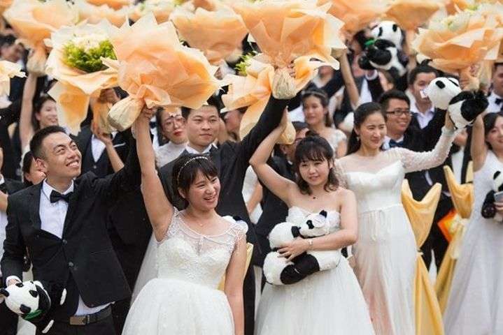 227 свадебных букетов, невест и женихов: в Китае состоялась коллективная свадьба