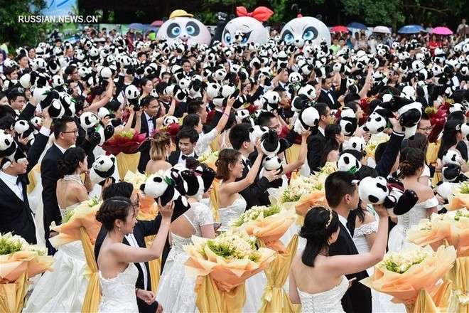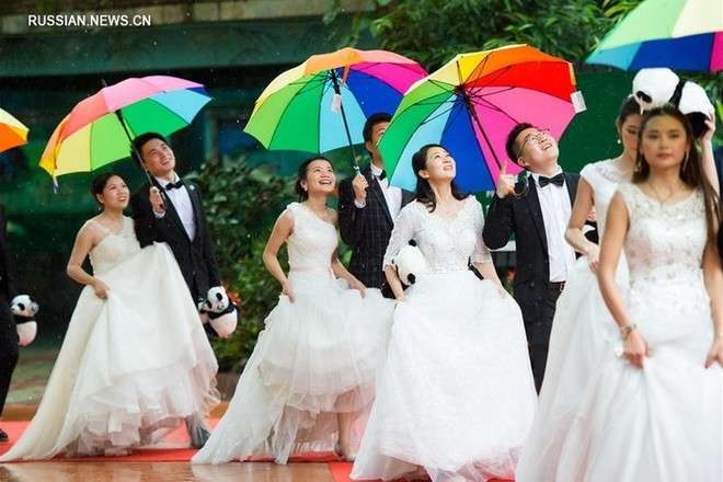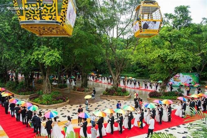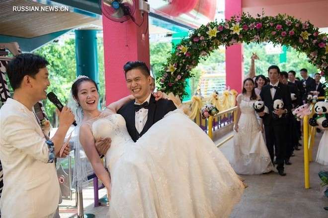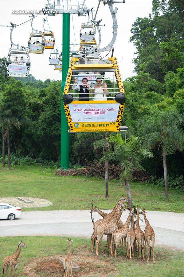 Коллективная свадебная церемония прошла 8 июля в сафари-парке «Чанлун» в Гуанчжоу.