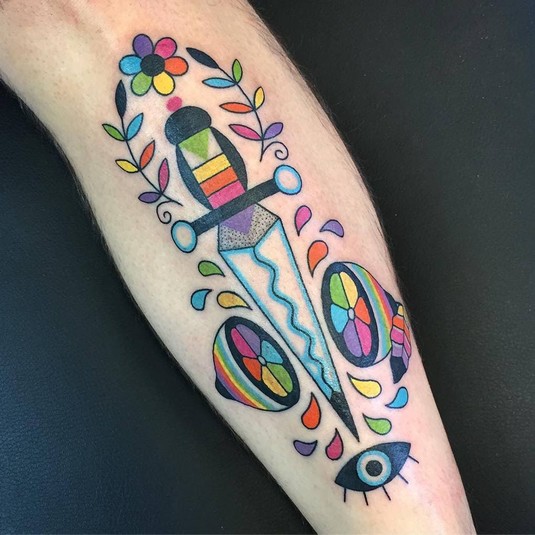 У него уже более 200 тысяч подписчиков в Instagram, и вот почему. Дейв делает татуировки в своём неповторимом стиле, причём стиль этот под завязку наполнен красочностью — использовать яркие цвета мужчина совершенно не стесняется.