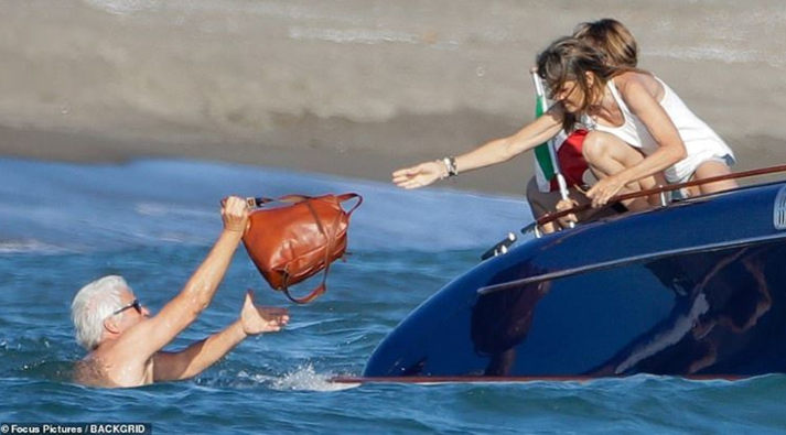 Ричард Гир канун своего 70-летия проводит в итальянской Тоскане. Папарацци застали актёра, когда он вместе с женой и друзьями садился на лодку. Причала рядом не оказалось, поэтому забираться на небольшое судно пришлось прямо из воды.