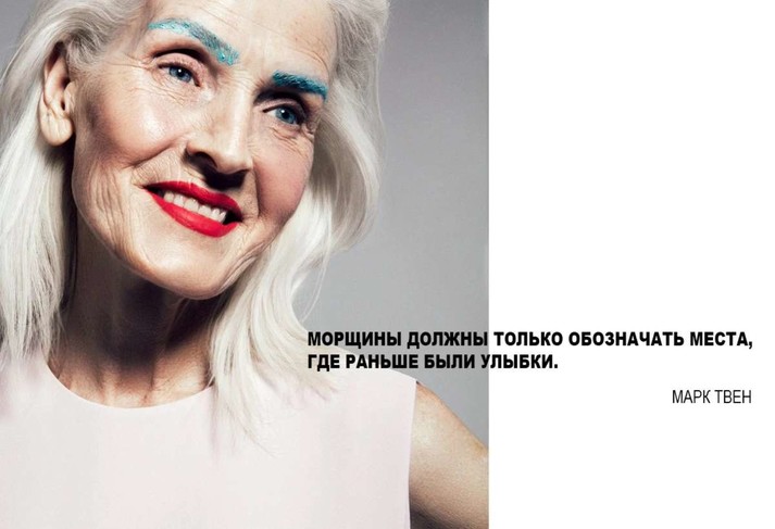 «Стареть красиво — то, чего очень не хватает женщинам в нашей стране, — говорит визажист Маруся Задорожная. — Времени и сил катастрофически нет даже в возрасте 30-40 лет, а в свободную минуту ты ни о чем не думаешь, не то что о себе. Но наших женщин интересно угадывать и открывать их снова и снова, особенно если за ними стоят непростые жизненные истории».