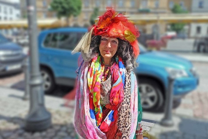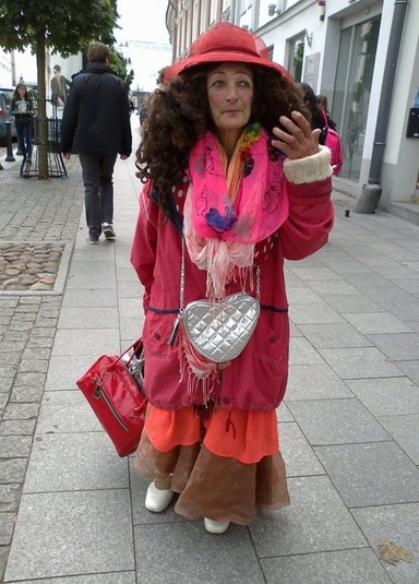 Эту удивительную женщину зовут Рози, и она бездомная из Вильнюса, которая любит экстравагантно одеваться и кокетничать с прохожими.