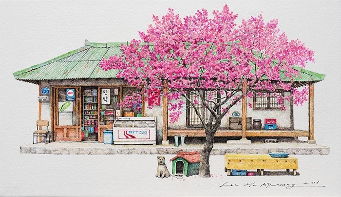 Акриловые скетчи: художница из Южной Кореи 20 лет рисует крохотные магазинчики