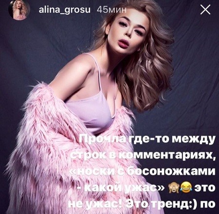 В частности, комментаторы принялись спорить о том, насколько гармонично выглядит комбинация розового платья, носков и босоножек. Артистка даже решила самостоятельно ответить на претензии своих критиков. Гросу подчеркнула, что такое сочетание – тренд, которому уже не один год.