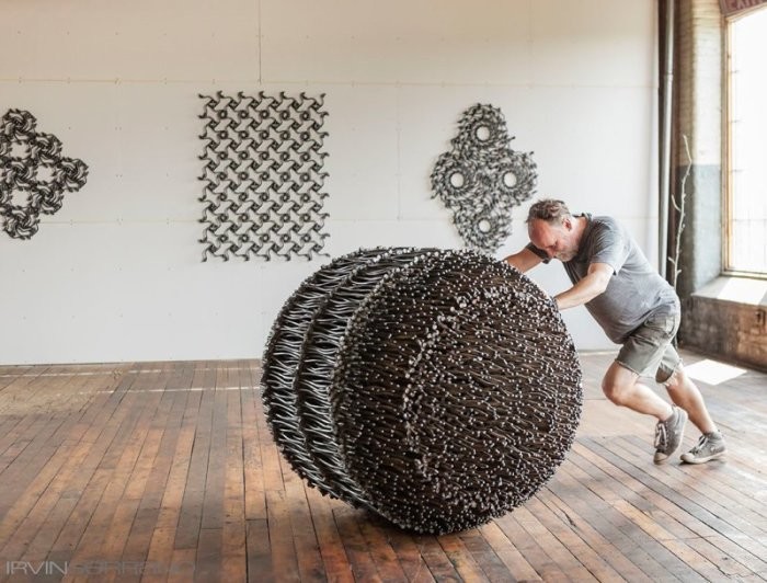 «То, что я увидел – напоминало тонкую грань красоты, о которой я когда-то мечтал, представляя себе. И тогда, придя домой, я понял, что мне однозначно необходимо раздобыть гвозди. Много гвоздей...», - рассказал Джон. С тех самых пор, гвозди стали его верными помощниками в создании сложных геометрических фигур-скульптур.