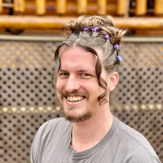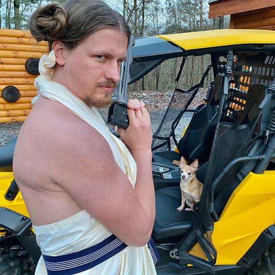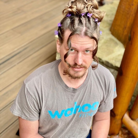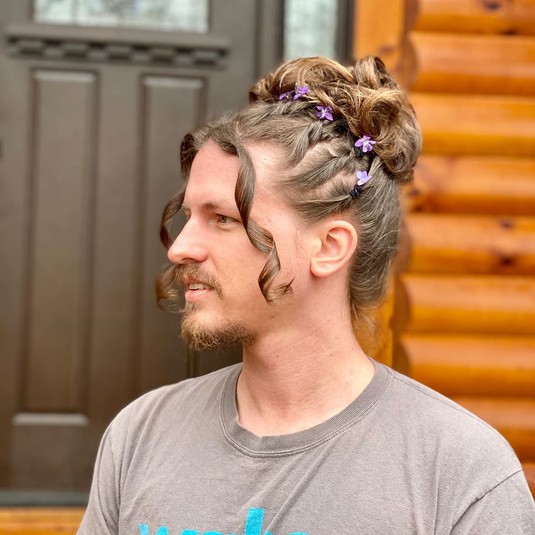 На другой размещенной серии фотографий собранные в пучок волосы мужчины украшают фиолетовые маленькие цветы, при этом две передние пряди накручены. Женщина также поделилась кадром, где ее парень позирует с прической, как у героини «Звездных войн» принцессы Леи.