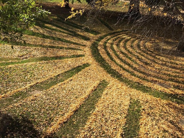 Художница Джоанна Хедрик из США завела страницу в социальных сетях, на которой публикует свои фотографии с рисунками, которые она выполняет из опавших листьев. Все эти работы выполняются на территории парка Государственного университета в Сакраменто.