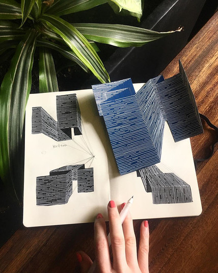 Работая со скульптурой, инсталляцией, рисованием/росписью, Кэти всерьез заинтересовалась топографией и удивительной взаимосвязью между 2D, перпендикулярными плоскостями и их искажением в 3-хмерном пространстве.