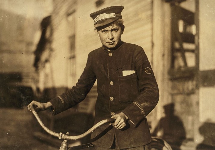 В числе прочего фотографу удалось сделать и множество снимков детей-почтальонов из нескольких южных городов. Юношам приходилась работать ежедневно по много часов, в некоторых случаях — не только днём, но и ночью. В своём дневнике Хайн писал, что дети регулярно сталкивались с опасностью — часто они вынуждены были отправляться в районы, кишащие наркодилерами и проститутками.