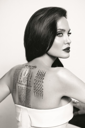 Анджелина Джоли оголила спину и показала свои татуировки в новой фотосессии
