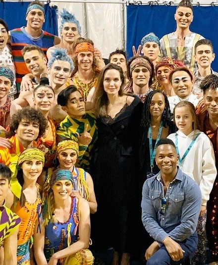 Снимок сделали сразу после спектакля. Пока неизвестно, поздравила ли Анджелина Джоли лично талантливых акробатов из шоу, или же сами актеры заметили в зале кумира миллионов, однако в сети быстро распространили эксклюзивные кадры со звездой.