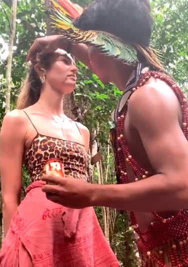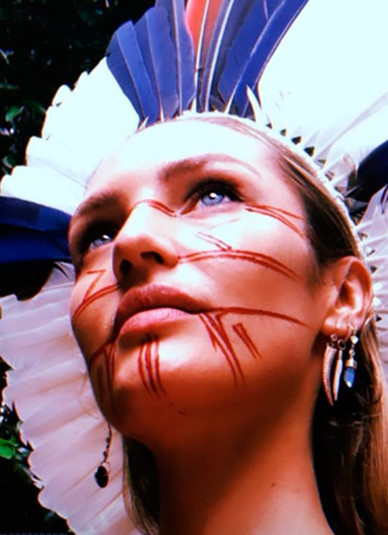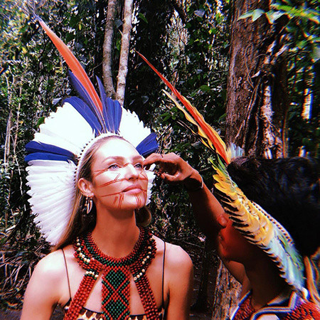 «Ангел» Victoria’s Secret Кэндис Свейнпол приняла участие в нескольких обрядах - в главном шатре в центре деревни ей рассказали историю племени паташо, а затем исполнили перед ней танец охотника. Она побеседовала со старейшинами и стала участницей обряда - на лицо модели нанесли традиционные индейские рисунки.