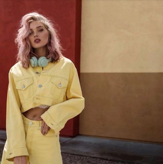 29-летняя Эльза позировала в джинсовых куртках насыщенных цветов, из под которых было видно кружевное белье.
