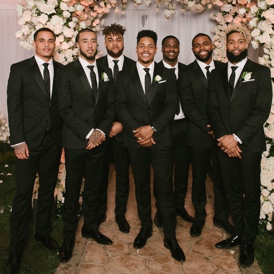 На фото видно, что дружки невесты были в стильных белых платьях, одновременно друзья Стерлинга Шепарда выбрали классические черные костюмы с галстуками. Среди подруг модели засветилась ее коллега Джордан Данн.