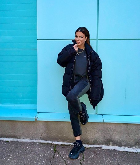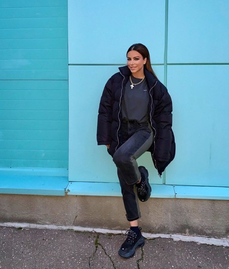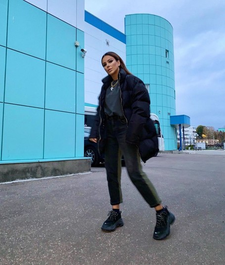 Так, певица в последнее время чередует два образа - светская дива в люксовых нарядах для светских выходов и концертов. А для обычных выходов и прогулок певица надевает оверсайз-куртки или пуховики, кроссовки и джинсы.