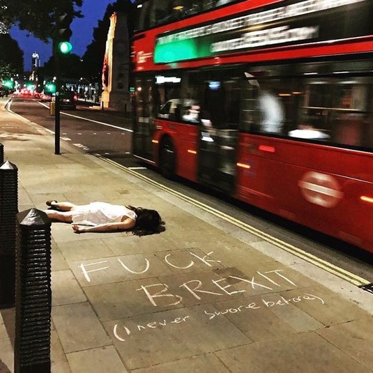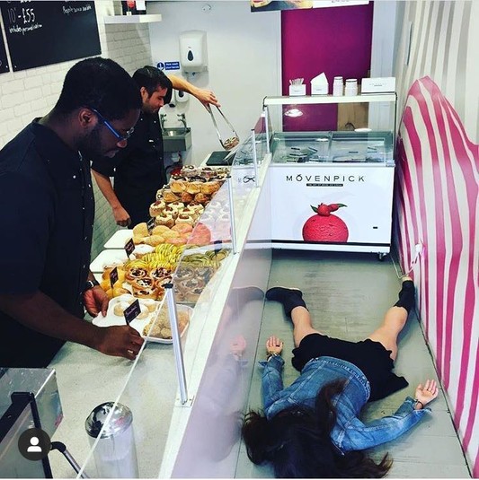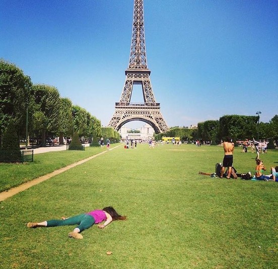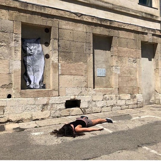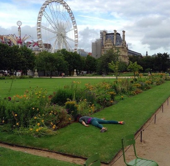 «Часто к художнице на улице присоединяются незнакомцы, но в разных странах ее позирование лицом книзу воспринимают по-разному. «Это зависит от города и культуры, где я делаю снимок, — поясняет она. — В Париже, например, никто даже не обратил на меня внимания, все посчитали, что я сумасшедшая художница».