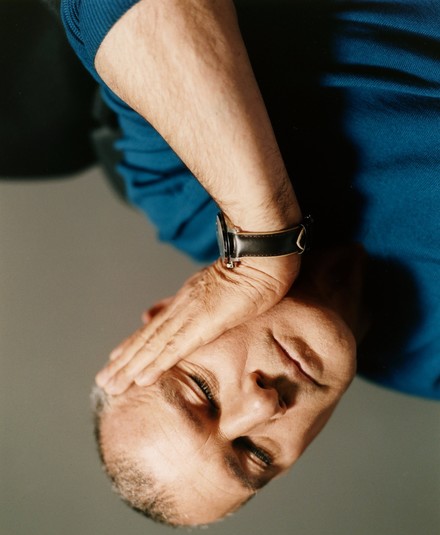 Для роли 67-летнего художника он полностью сбрил свои волосы на голове и брови, однако не потерял своего шарма и харизмы в весьма загадочной фотоистории.