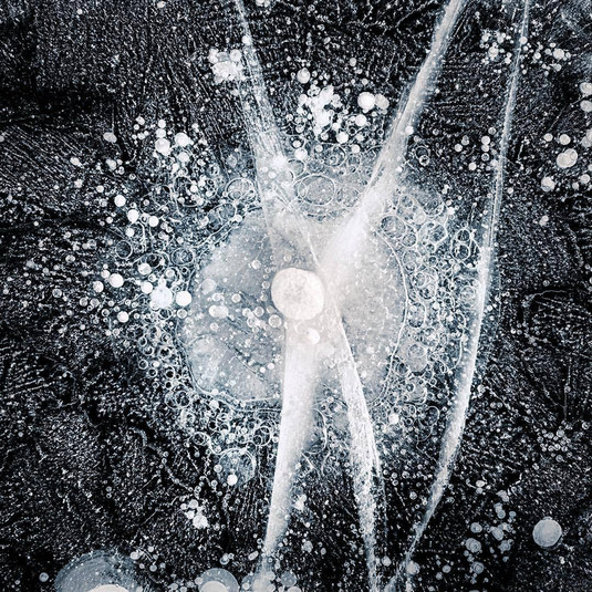 Разнообразие запечатлённых узоров удивительно – от льдинок, укрытых нежными снежинками, до пузырьков воздуха, похожих на замороженных медуз. «Ледяные образования» – это призыв замедлиться и понаблюдать за мелкими деталями, что нас окружают. Это напоминание о том, что искусство повсюду, если присмотреться.