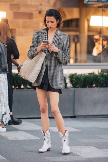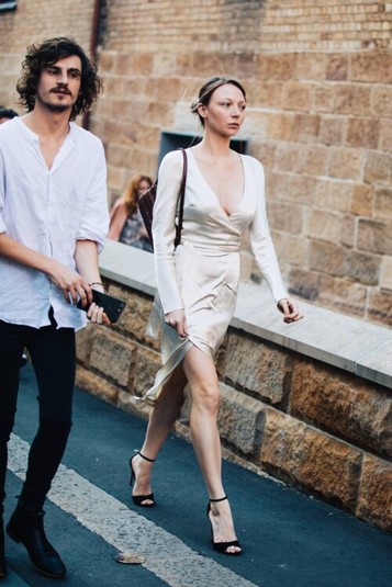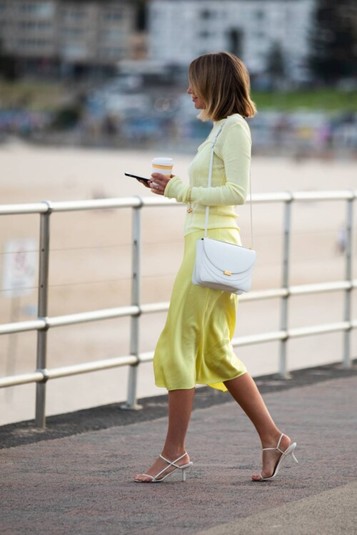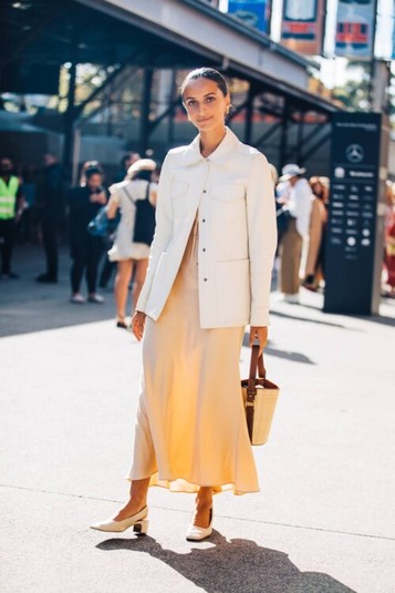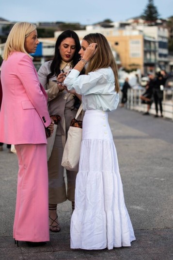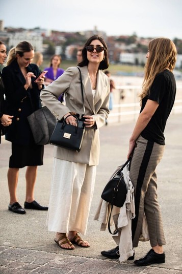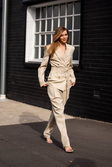 Модницы в Австралии влюблены в брючные костюмы всех оттенков бежа,шелковые юбки, топы и бельевые комбинации в приглушенной весенней палитре, льняные платья и комбинезоны с функциональными карманами, отсылающие к рабочей униформе строителей, а также блузы с воздушными рукавами и тренчи нейтральных цветов.