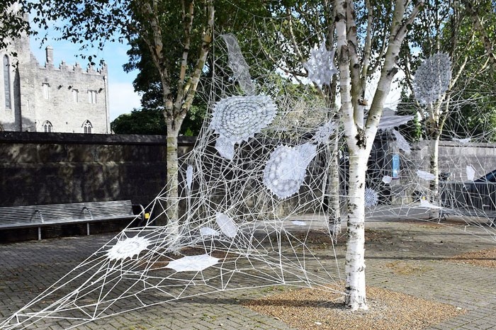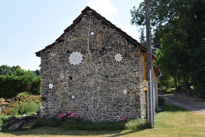 Таким образом получается очень интересная паутинка. Каждая работа выглядит действительно оригинально. А то что все рисунки выполнены исключительно в белом цвете делает улицы и целые кварталы намного приветливее и светлее. Мы предоставляем вам такую возможность самим убедиться в красоте стрит-артов от NeSpoon.