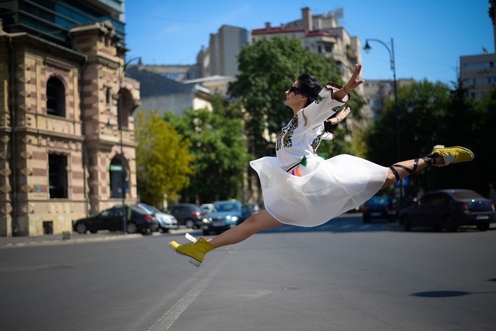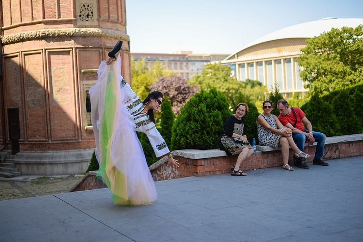 Чтобы подчеркнуть красоту румынского народного костюма грацией танца и построить своеобразный мостик между историей и современностью, одна румынская балерина стала танцевать в национальной одежде прямо на улицах городов.