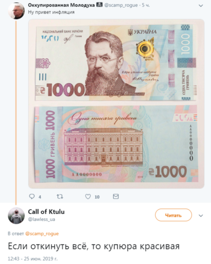 Сообщается, что новые банкноты станут обязательными для совершения платежных операций с октября. А тем временем, украинцы не стали ждать осени и начали развлекать соцсети остроумными комментариями относительно новой банкноты. Скотч собрал для вас самые лучшие.