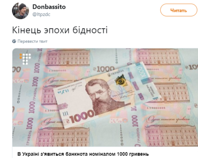 Банкнота номиналом в тысячу гривен: реакция соцсетей (фото)