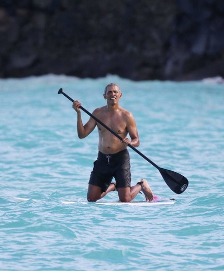 Новый год Барак проводит на Гавайях, где отдыхает на местных пляжах и поддерживает физическую форму, которая, к слову, у 58-летнего Обамы с годами стала только круче.