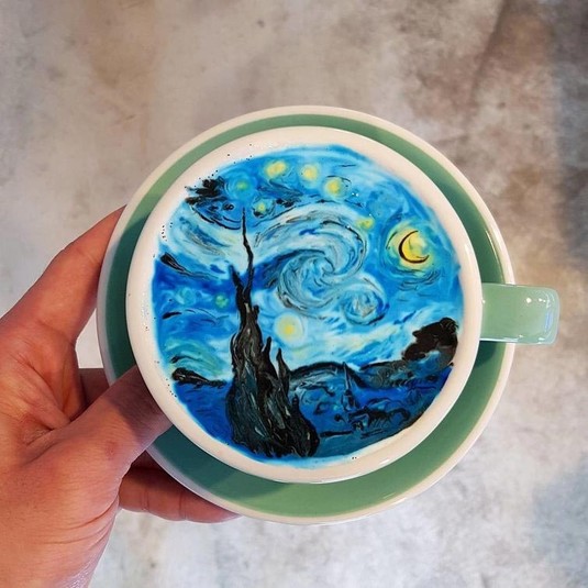 Также бариста копирует картины известных художников. В кофейной чашке, поданной Канбином посетителям кофейни, уже красовались «работы» Винсента Ван Гога и Эдгара Дега.