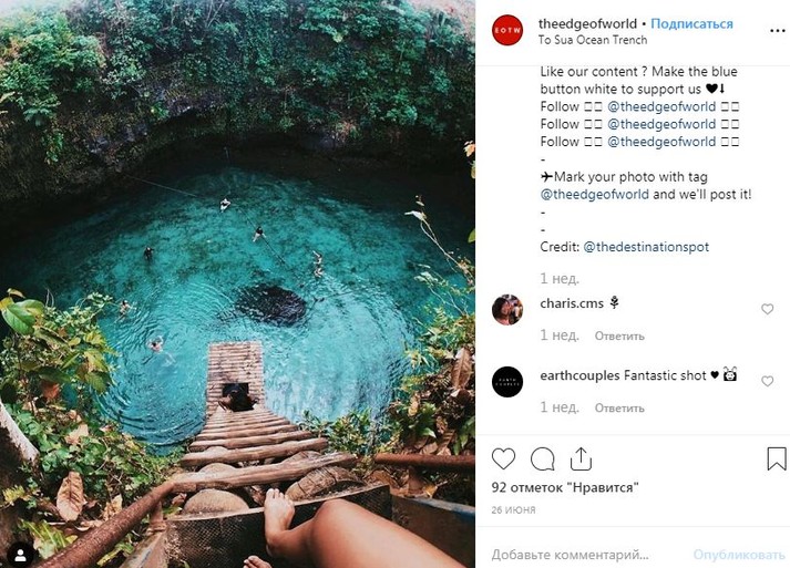 Человек может создать много красивых вещей, но ему никогда не сравниться с самой природой. Доказательство тому — озеро То-Суа. Буквально его название можно перевести как «Большая дыра».