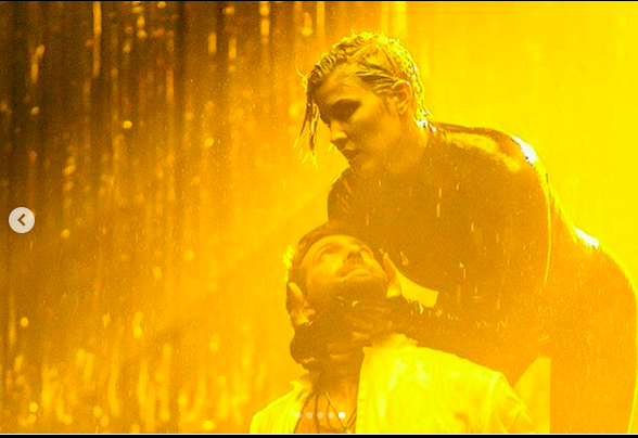 В кадре MARUV позирует в привычном латексном образе, Салем - в белой расстегнутой рубашке и укороченных брюках. Пикантности некоторым снимкам добавляет и то, что участники шоу на них мокрые.