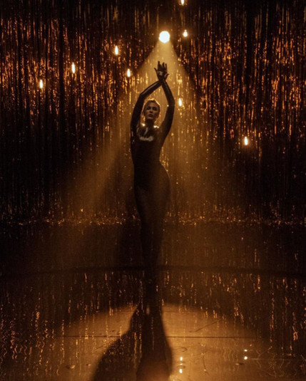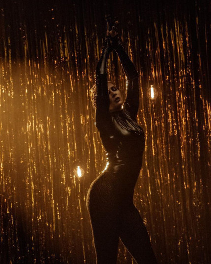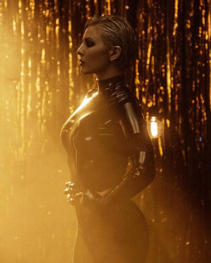 На своей Instagram-страничке исполнительница опубликовала целый фотоальбом новых кадров, на которых также позирует в облегающем сексуальном наряде из черного латекса, в приглушенном свете, на фоне блестящей стены и лампочек.